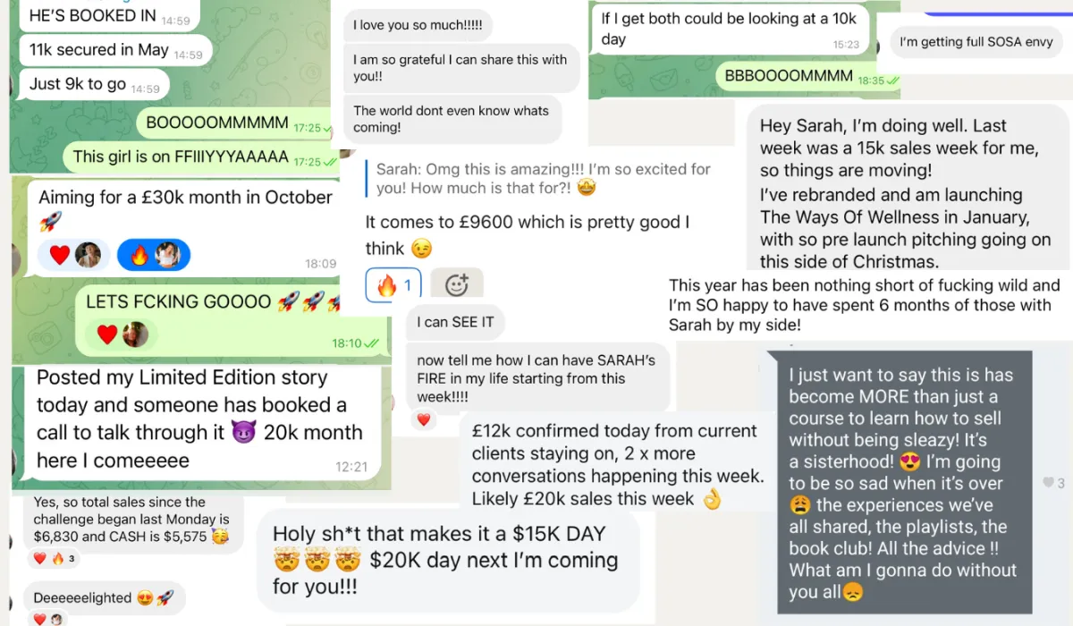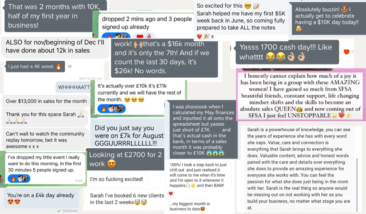 A: You'll have 12 x months access to the mastermind calls & active mentorship with Sarah, plus lifetime access to the sales programme contents and all of the trainings/materials inside.